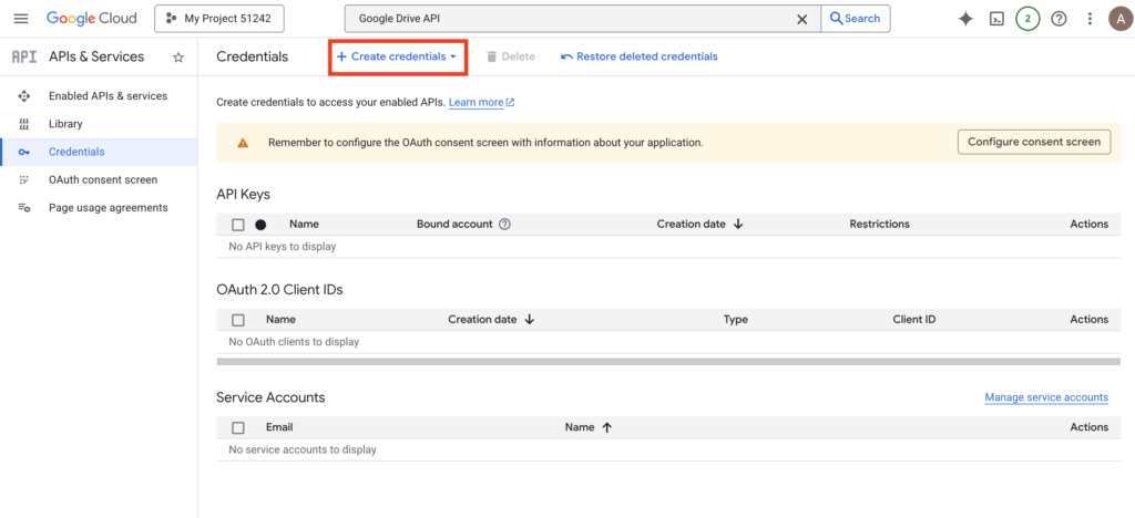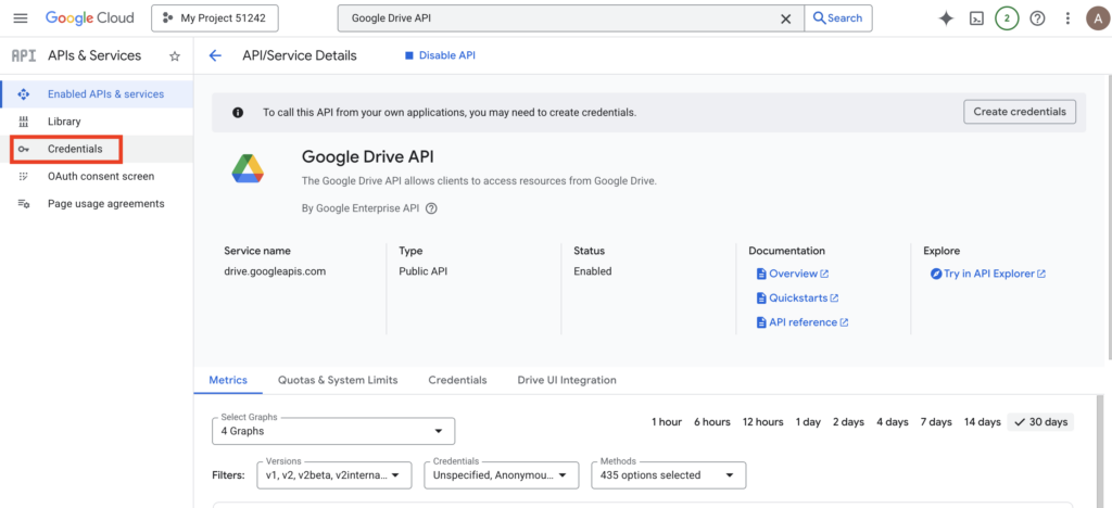 1. Enter Credentials Page: After enabling the API, click “Credentials” in the left sidebar.