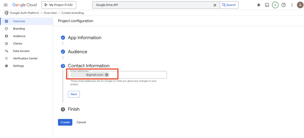 4. Paste that URL back into your Google Cloud Console under “Authorized redirect URIs” and hit Create.