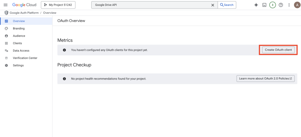 4. Create the OAuth Client ID: