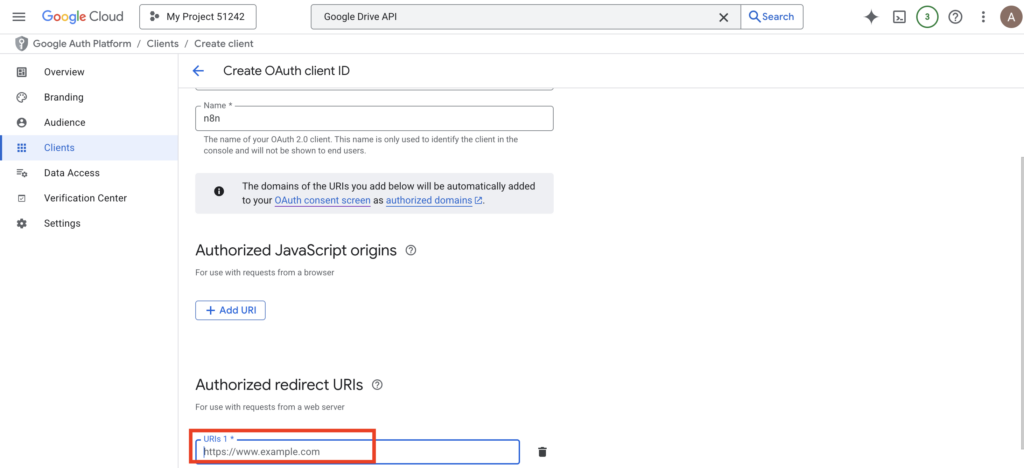 - Authorized Redirect URIs: This is often where users get stuck; this specific URI must be copied from your n8n node settings.
