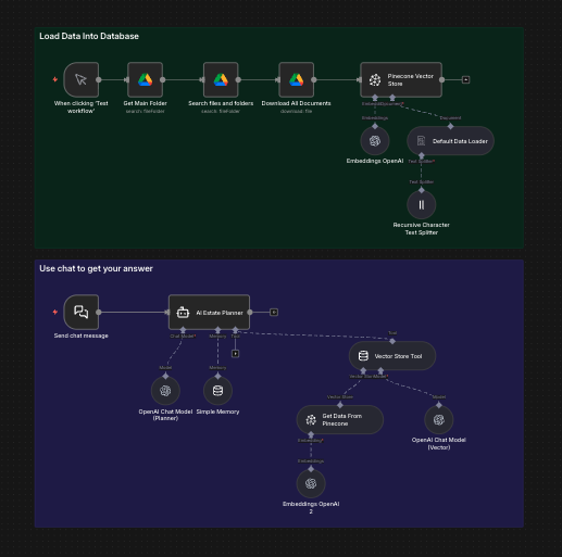 - Pinecone (Vector Store): This is your super-organized digital library. It stores the “meaning” of every sentence as math so the AI can search it instantly.
